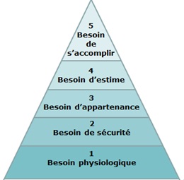 Maslow observe que l’individu hiérarchise ses besoins et cherche à les satisfaire selon un ordre de priorité croissante :